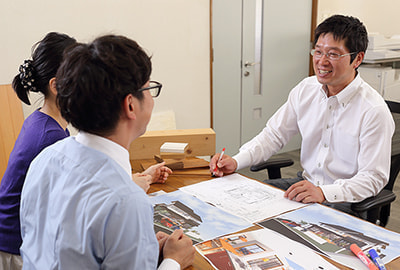 お聞きしたご要望をもとにプランをご提案いたします。ご家族の構成・生活動線・収納などお客様が暮らしやすい理想の住まいをさまざまな角度から考えていきます。平面図・立面図・3Dパース図面作成により、リアルでわかりやすくご説明させていただきます。ここで家づくりに関わる全体の予算もご相談しながら進めていきます。じっくりと何度でも打ち合わせを重ね、ご納得いただけるプランにいたします。