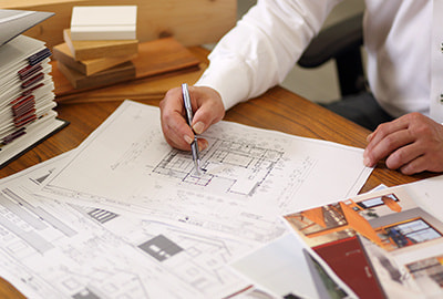 何度も打ち合わせを重ね、ご納得していただきましたら最終プランに決定し、本図面の作成・お見積りへと進んでいきます。平面図・立面図・設計図面の作成など、細かく図面に描きます。お見積りも柱の一本一本からひろっていきます。キッチン・お風呂・洗面・トイレなどはショールームに訪問いただきご予算に合わせて決めていただきます。水廻りも含めたお見積書を作成し、ご納得いただけましたらご契約へと進みます。