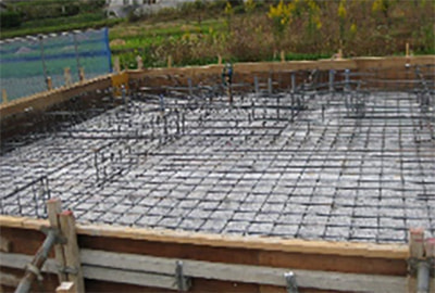 建物の土台作りとして重要な工事です。建物の土台となる範囲にコンクリートを敷き詰めるベタ基礎を採用しています。地面から発生する湿気やシロアリの侵入を防ぐことができるため、耐久性に優れた建物をつくることができます。