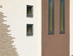 左官職人の手仕事により外壁を塗っていきます。主にモルタルの外壁を使用しています。コテ使いや塗り方一つで風合いが変わり美しい仕上がりになります。