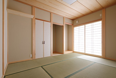 屋根材は主に瓦を使用しています。耐久性もありとても美しいです。平板瓦・和瓦・S型瓦など外観デザインに合わせて選定できます。シンプルな形状のものも多くお好みの形や色から選んでいただけます。