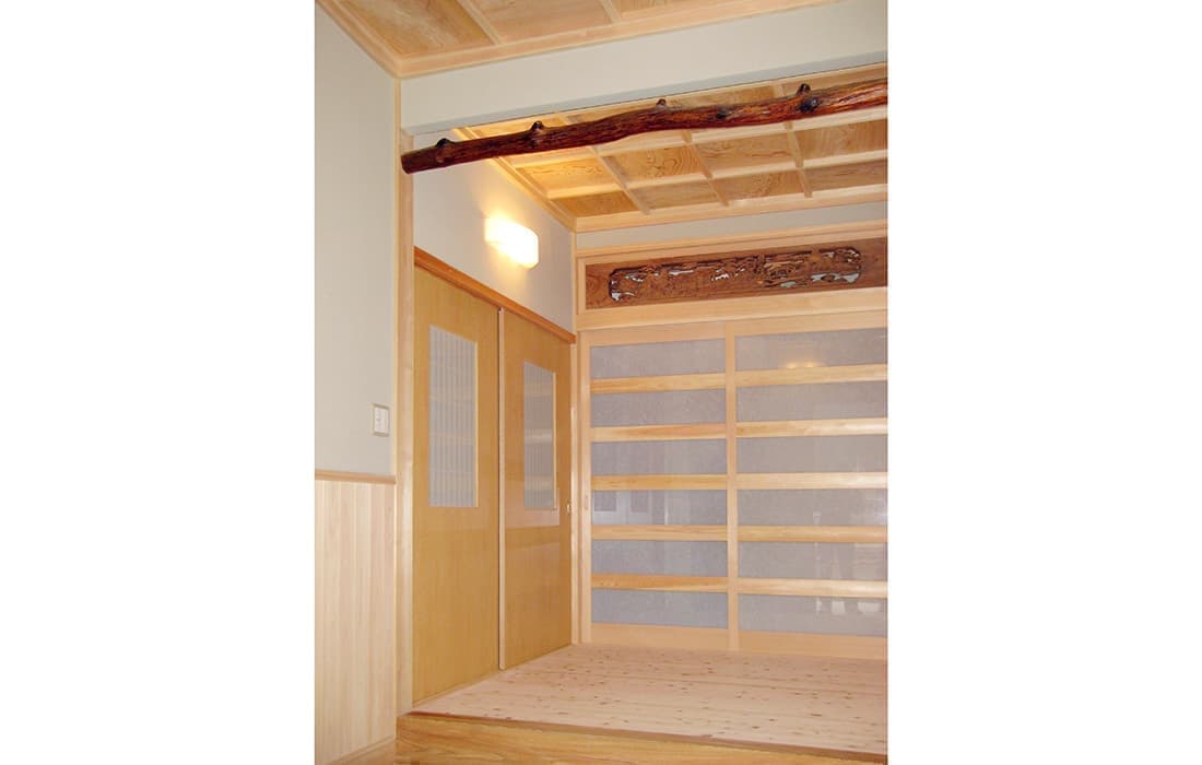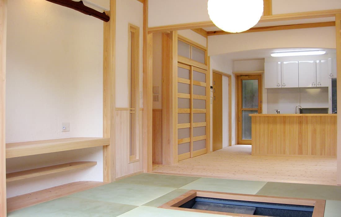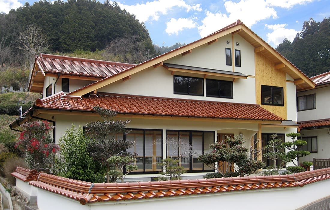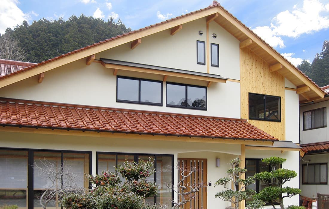 「木組みの家」和風モダン住宅 大黒柱のある赤屋根の家 新築 赤屋根が印象的な家。大黒柱や大きな梁、壁を全て珪藻土で仕上げ自然素材にこだわった住まいです。リビングに床暖房・掘りごたつなど充実した設備で寒い冬も快適に過ごせます。廊下やトイレなど、スペースを広く取り、車椅子にも対応したゆとりのある設計にしています。 前へ 建築実例一覧 次へ