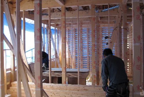 | 大工工事 | 床工事・断熱・フローリング・ドア枠・窓枠・天井など |