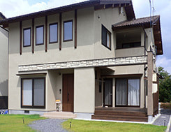 左官職人の手仕事により外壁を塗っていきます。主にモルタルの外壁を使用しています。コテ使いや塗り方一つで風合いが変わり美しい仕上がりになります。