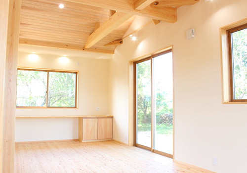 木造軸組工法は、木と木を組むことで高い耐久性を得られます。厳選された国産材の無垢の木をふんだんに使い、屋根には丈夫な瓦、壁や天井にはできるだけ自然素材を使います。一つ一つ「ほんもの」にこだわり、素材の良さを生かして長く大切に次世代につなげる家づくりをします。