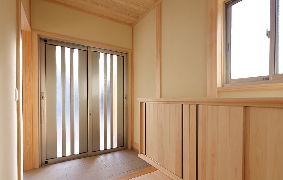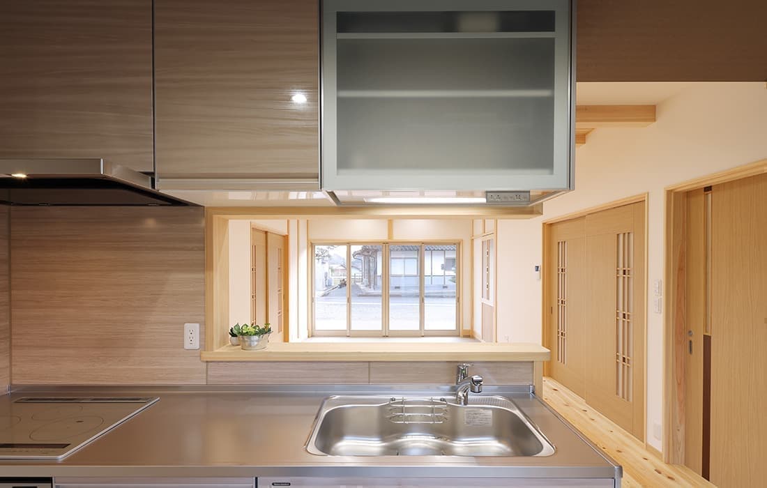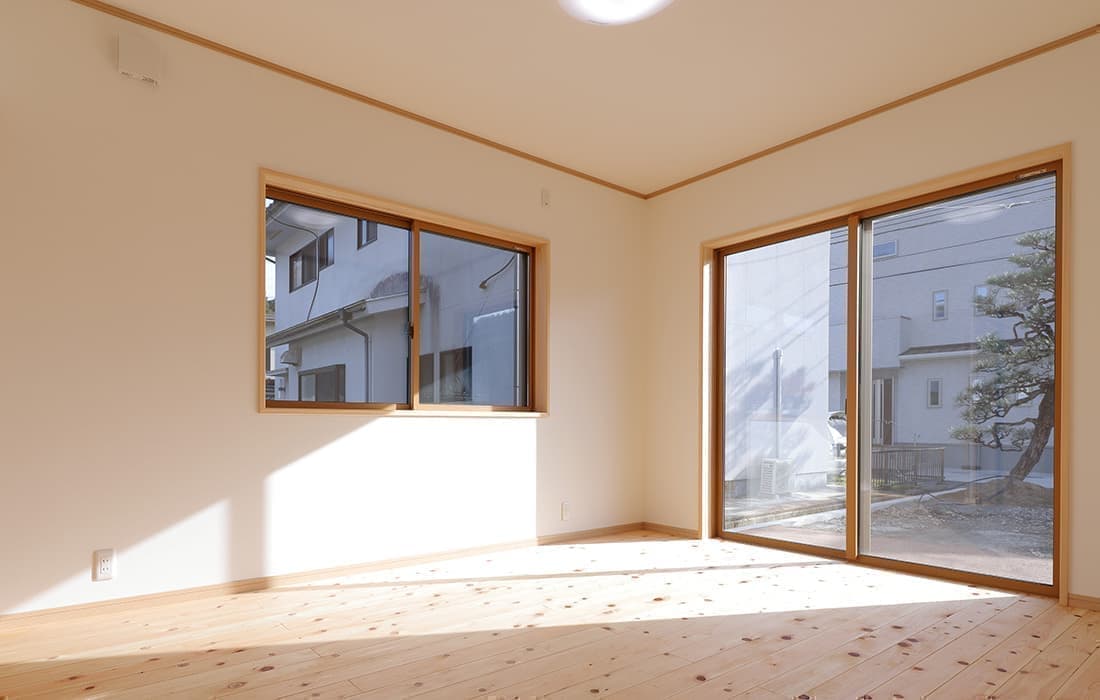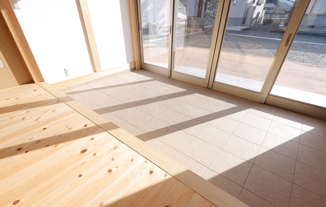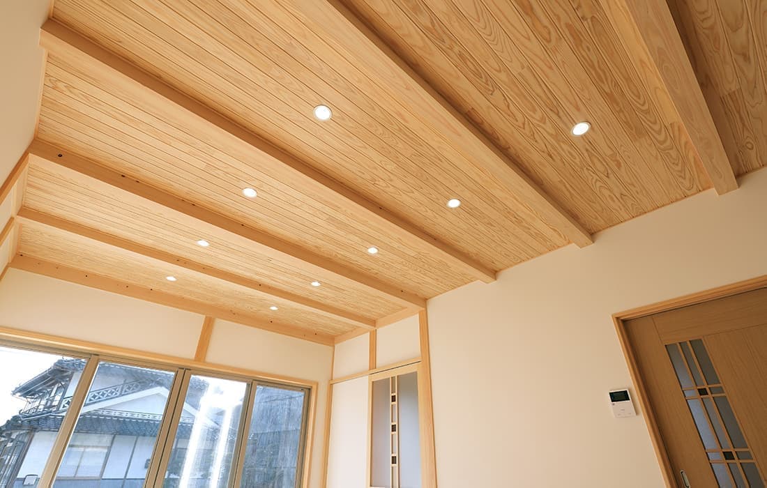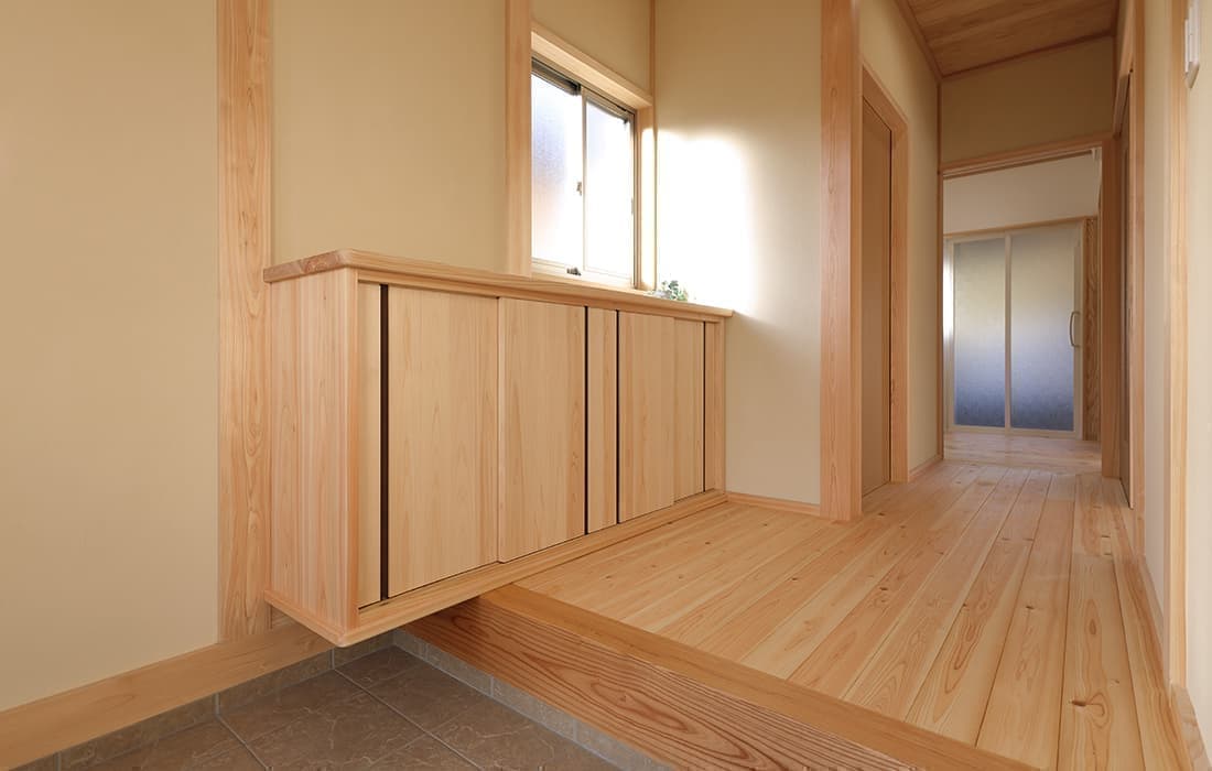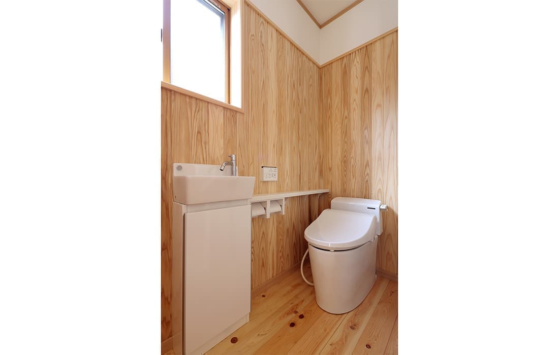 「木組みの家」洋風モダン住宅 杉板貼り平屋の家 新築 外壁を全面杉板貼りにし、木目と節が天然木ならではの奥深い味わいになり魅力的な平屋です。日差しが心地よい土間テラスはリビングとつながり一体感があり広々としています。来客時には、テラスでくつろぎのカフェタイム。リビングの天井も高くし、梁を出し杉板貼りにして開放感のある空間になっています。対面式のキッチンの壁面やフローリングは「ひのき」を使用して温かい雰囲気に。部屋の入口は引き戸を採用し、すべての動線を短くコンパクトにしています。スローライフを楽しむ一人暮らし癒しの住まいです。 前へ 建築実例一覧 次へ