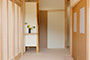 「木組みの家」純和風住宅 自然と和 共に暮らす平屋の家 新築 桧の板貼り、格子の玄関が美しい平屋の住まいです。存在感のある柱と飾り棚のある玄関ホール。LDKの壁は調湿効果のある珪藻土を使用。寝室は小上がりした畳コーナーの下に収納スペースをつくりました。家族がつながる、居心地の良い住まいが心を癒してくれます。 前へ 建築実例一覧 次へ
